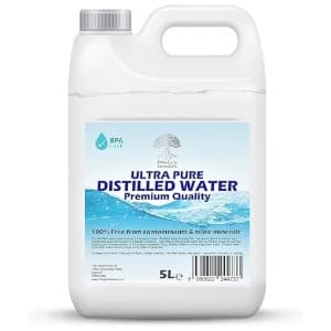 Te dejo un enlace de una garrafa de 5 litros de agua destilada multiusos. Es la más vendida de Amazon y las opiniones son muy positivas. La agua destilada de esta marca, según la exploración de productos hecha, se diferencia por las 6 fases de destilación y la prepurificación con osmosis que ha sufrido el proceso. Lo que permite una gran cantidad de usos en diferentes ámbitos como para el coche, limpieza, plantas, colorimetría, desinfecciones alimentarias, baños de calefacción etc…